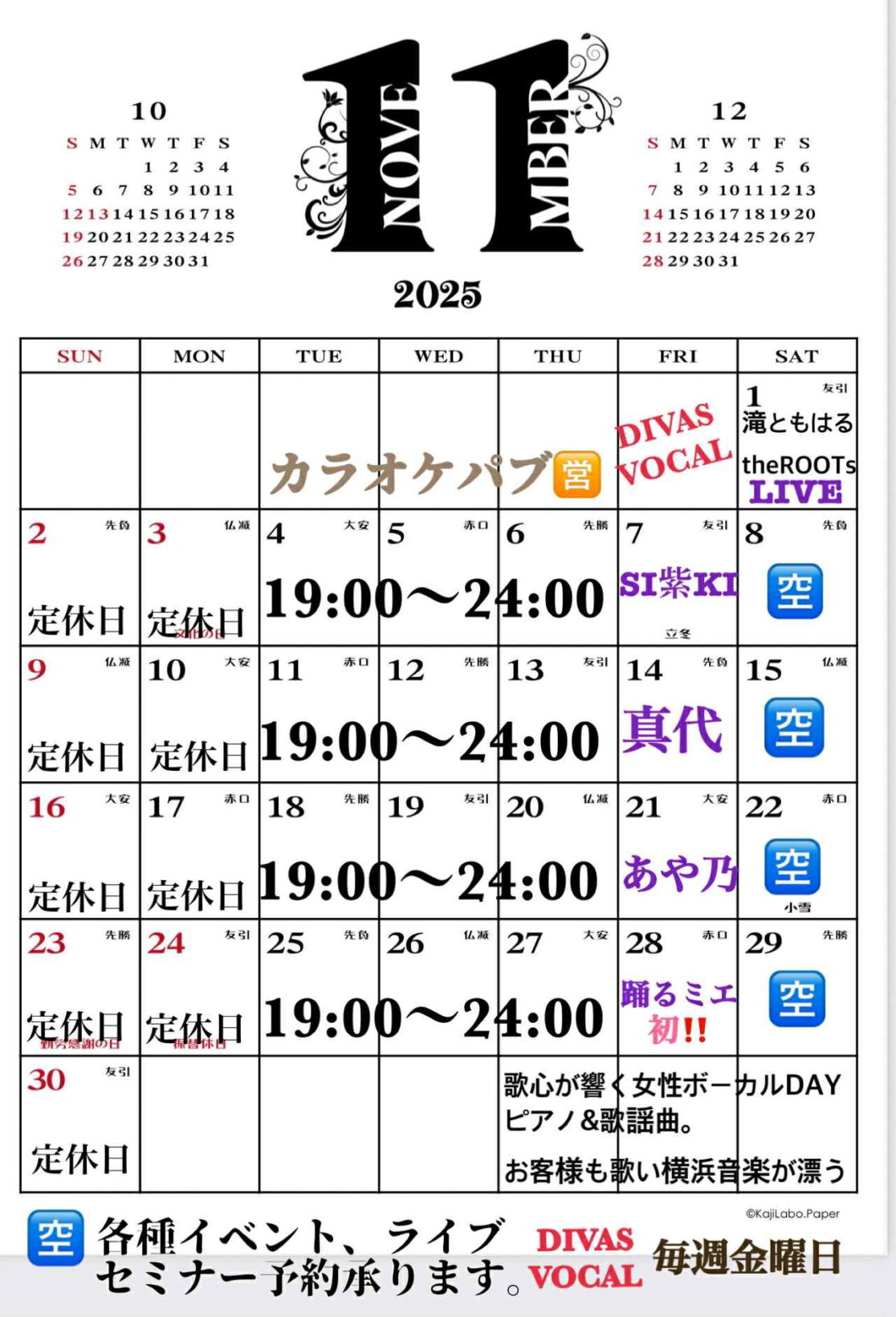 11月 音屋369 (ミロク)スケジュール公開
